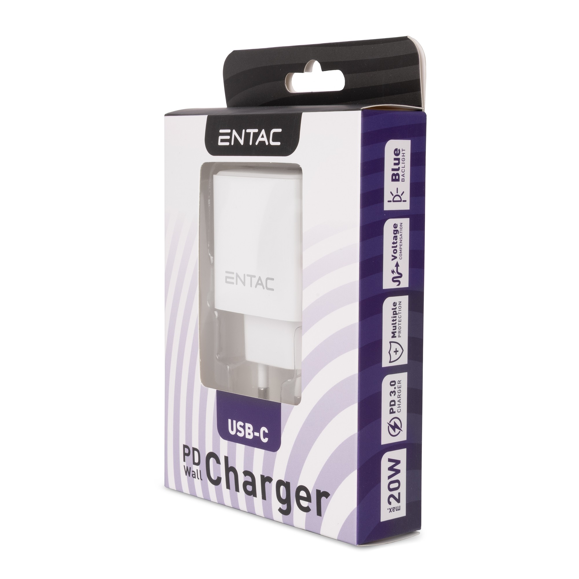 Entac Hálózati gyorstöltő PD, USB-C, 20W, fehér