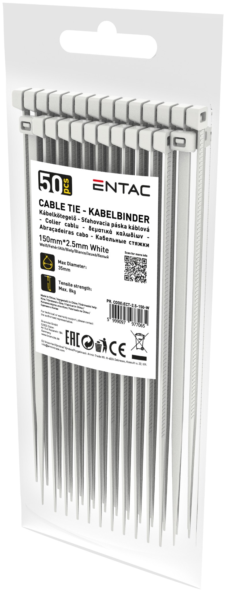 Entac Kábelkötegelő 2.5mmx150mm Fehér | BR (SKU:ECT-2.5-150-W)