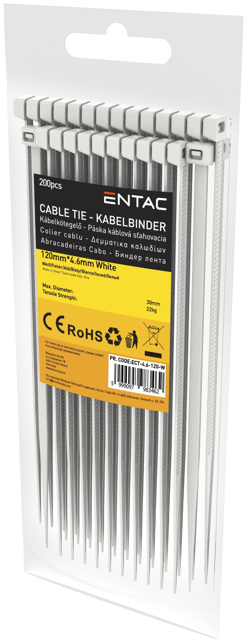 Entac Kábelkötegelő 4.6mmx120mm Fehér 200db/Bliszter | BR (SKU:ECT-4.6-120-W)