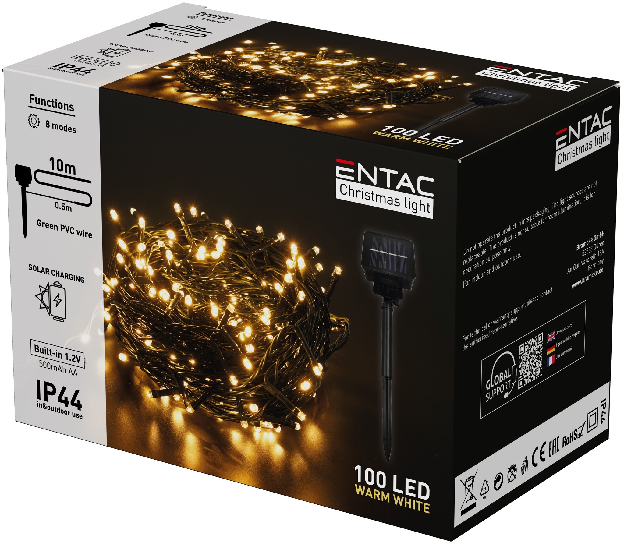 Entac Karácsonyi IP44 100 LED Füzér CW 10m Leszúrható Napelemes Konzollal