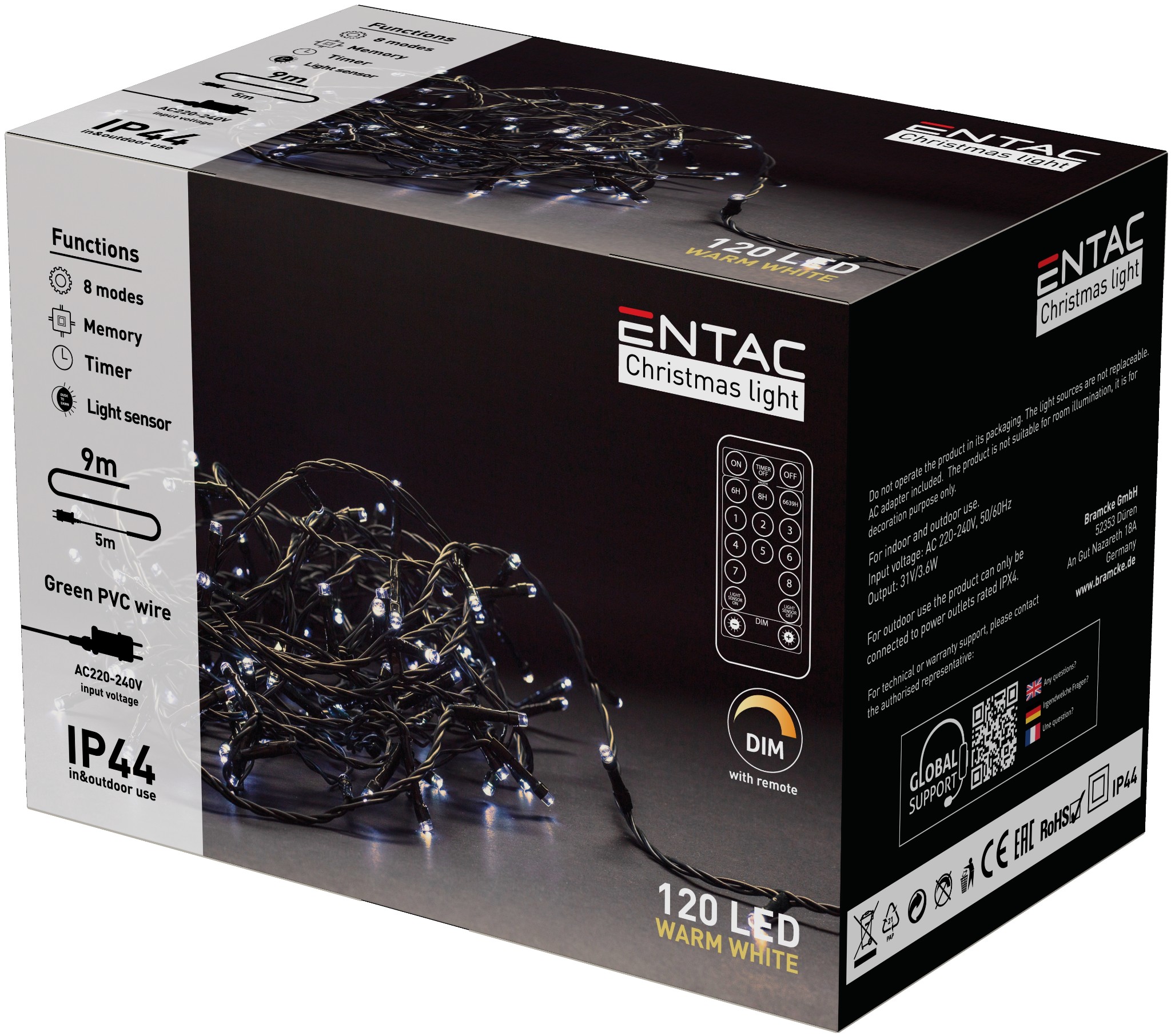 Entac Karácsonyi IP44 120 LED Füzér WW 9m Távirányítóval | BR (SKU:ECL-120-WW-IR-FS)