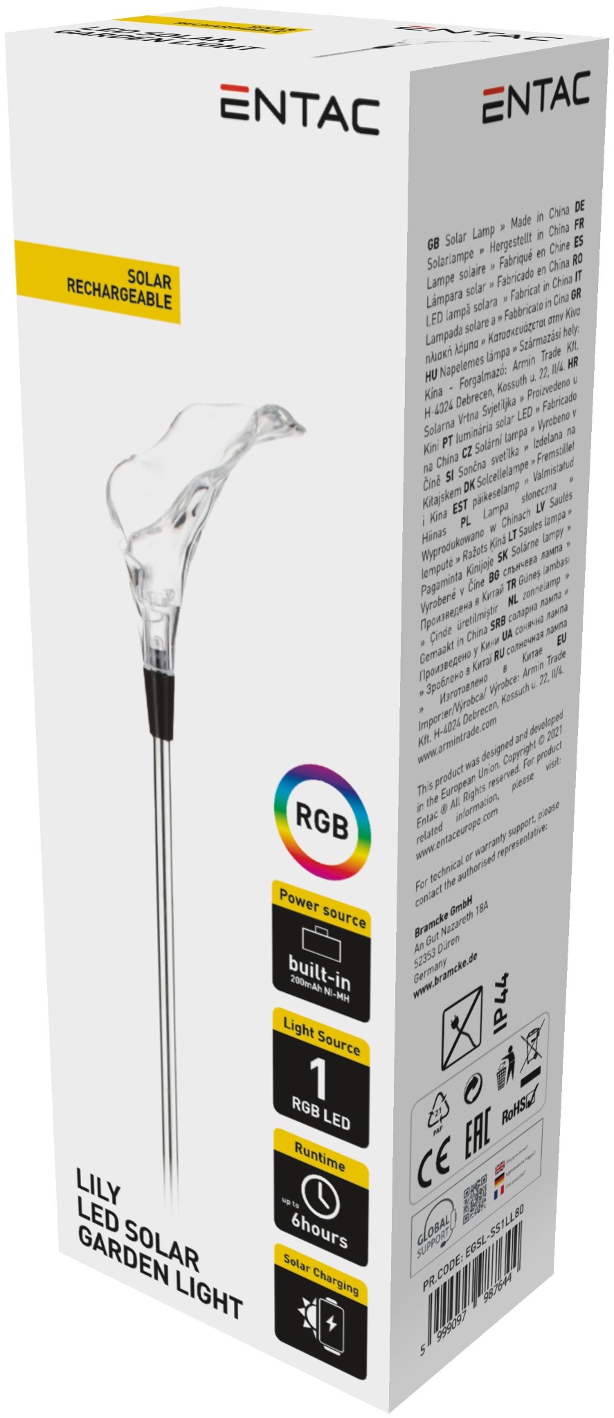 Entac Kerti Szolár Lámpa 34cm RGB Rozsdamentes acél kála forma