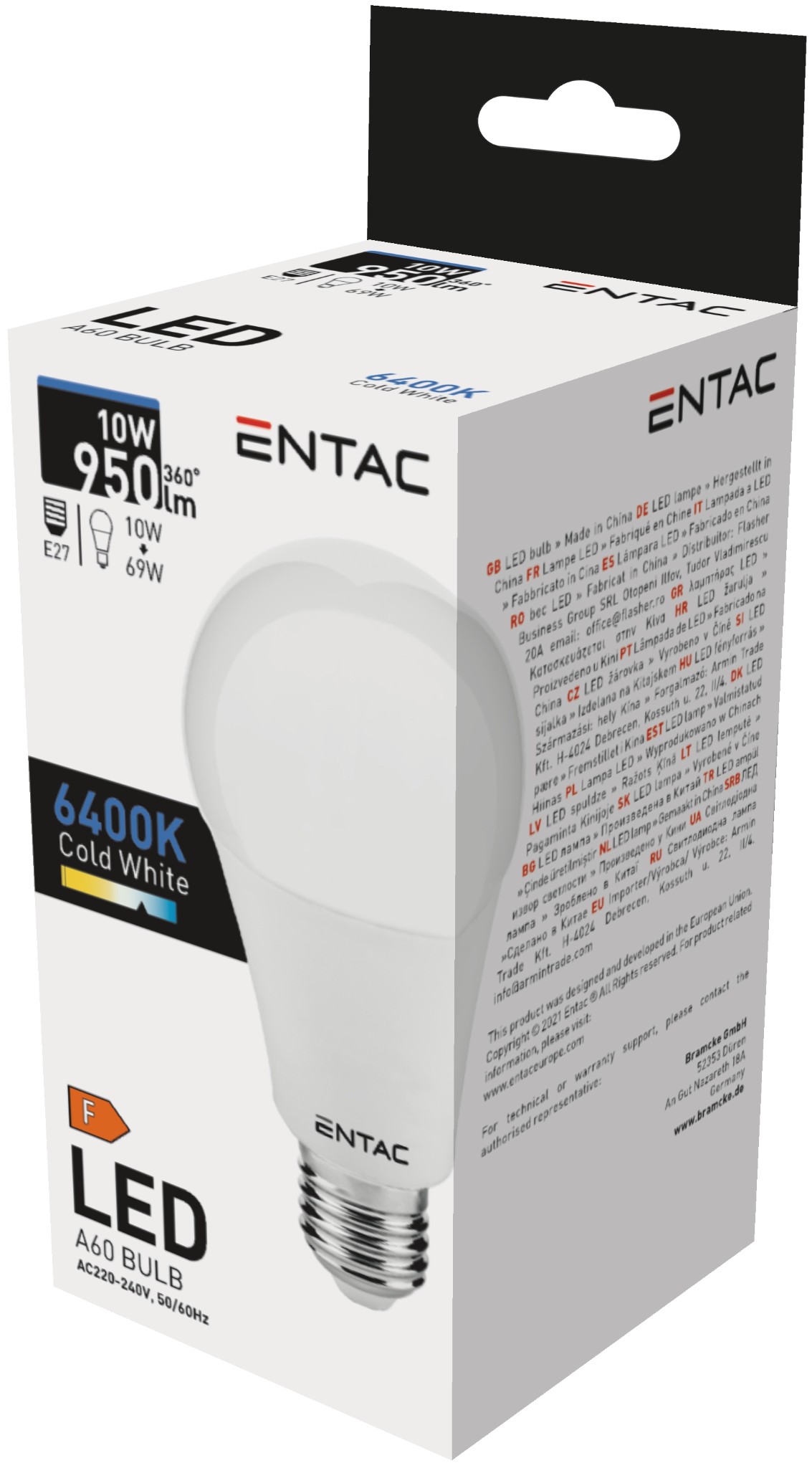 Entac LED Globe E27 10W CW 6400K