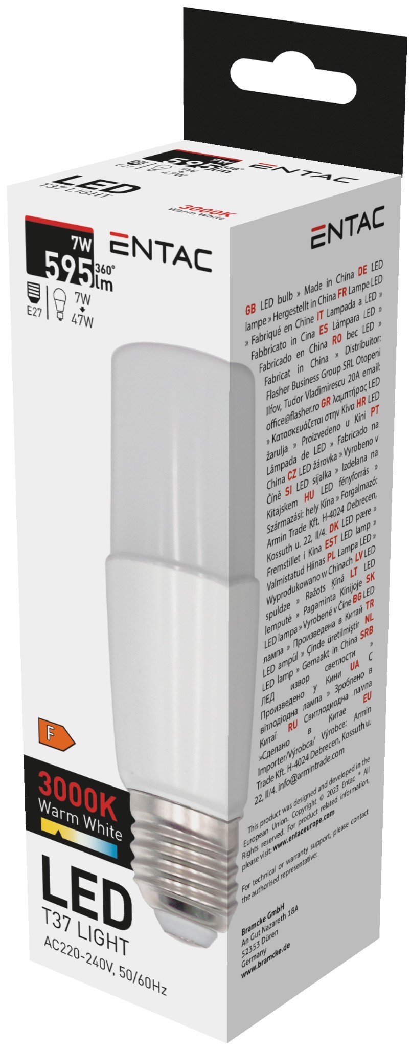Entac LED T37 E27 7W WW 3000K