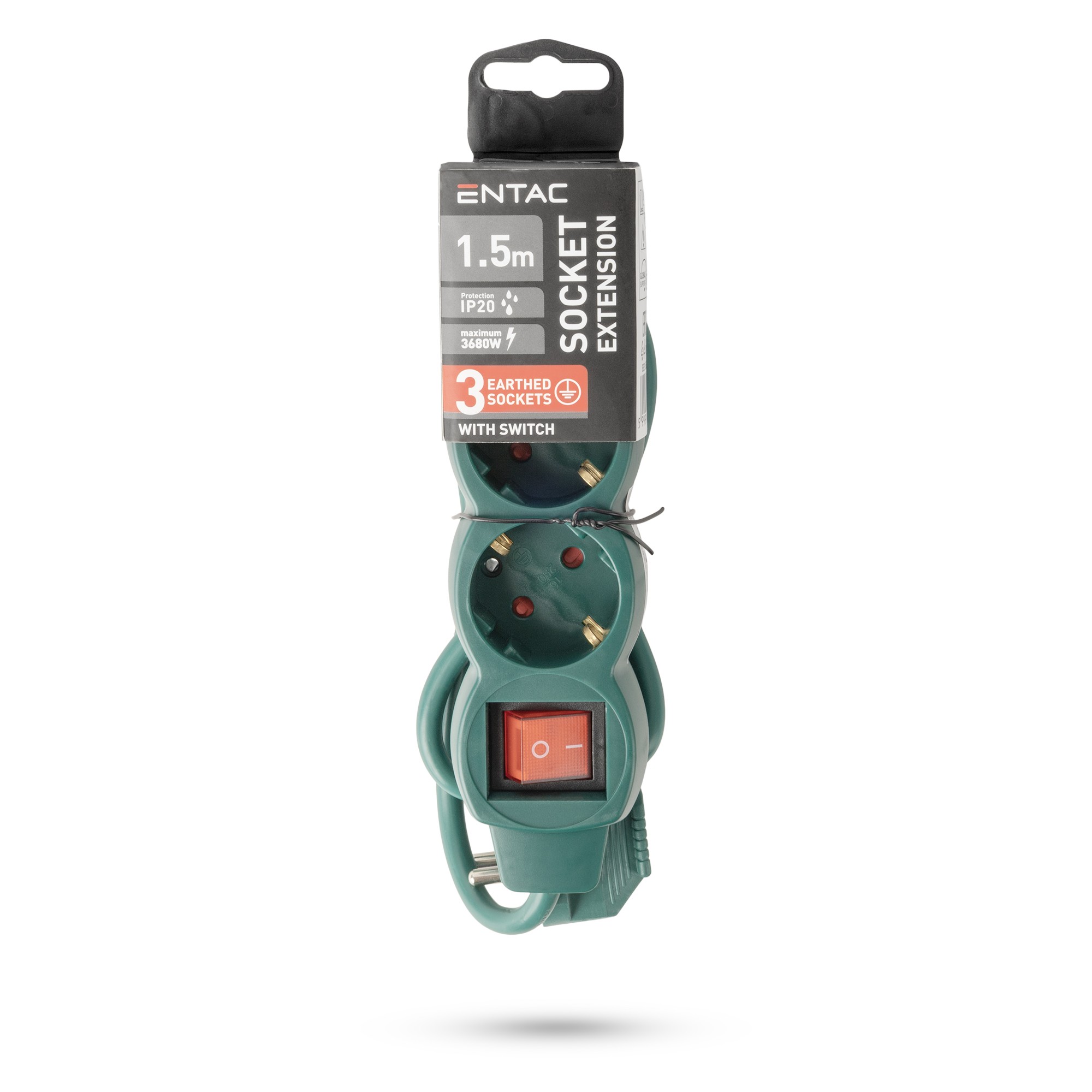 Entac S1 Elosztó 3 Foglalat Kapcsolóval 1,5m 3G1.5,zöld
