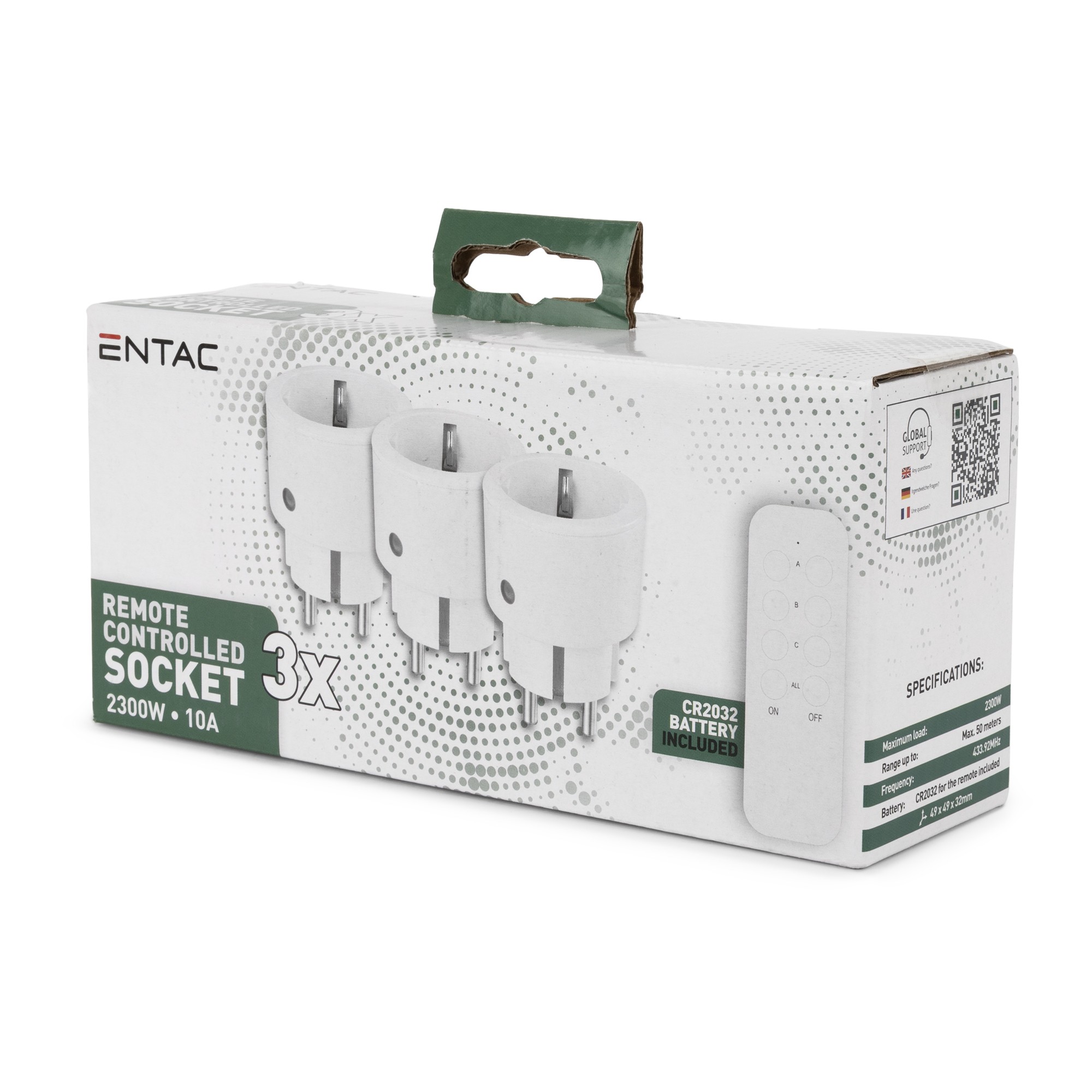 Entac Távirányítós Hálózati Adapter, 3 Aljzat/Távirányító