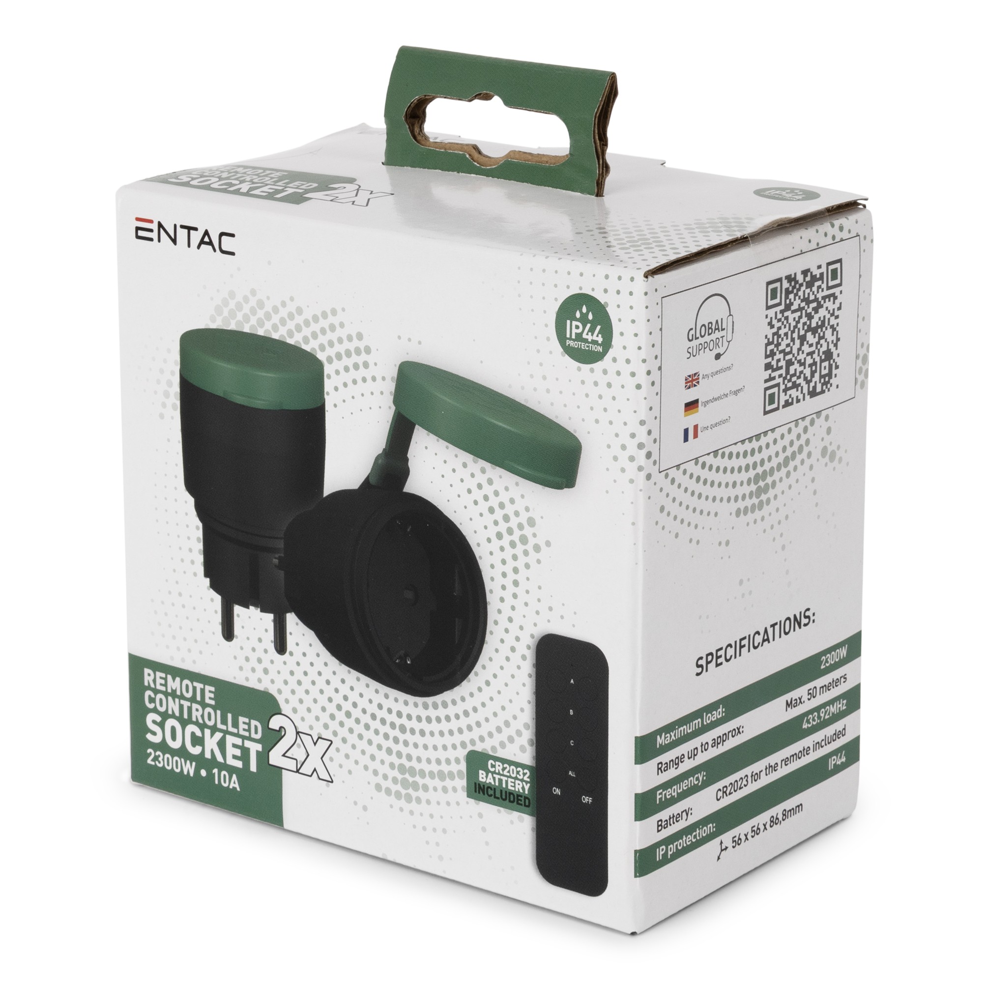 Entac Távirányítós IP44 Hálózati Adapter, 2 IP44 Aljzat/Távirányító