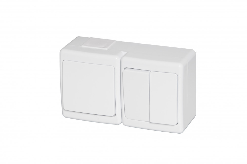 Fehér egypólusú kapcsoló + csillárkapcsoló, kültéri, vízmentes, IP44