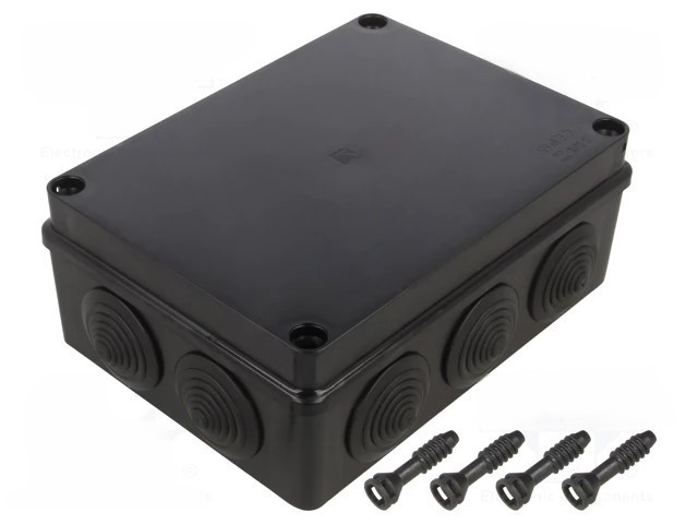 Kötődoboz, 10 gumi bevezetővel, fekete, 190x140x70mm, IP65, UV-álló