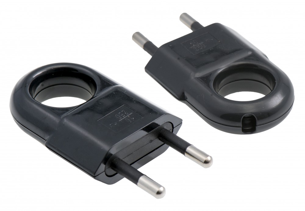 Lapos dugó, fogantyúval, földelés nélkül 10A/250V, fekete színű