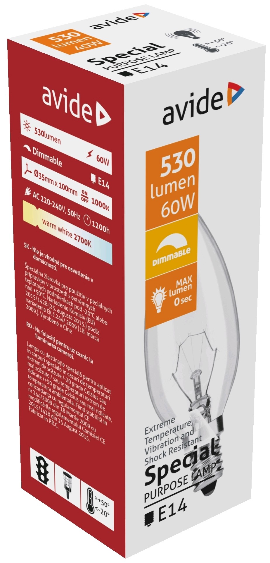 Speciális Izzó C35 60W E14 WW (Avide hőálló)
