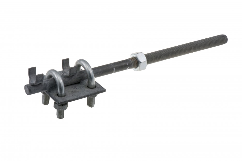 Villámvédelmi vezetékfeszítő, rögzítővel, 220mm, M12 csavar, (4xM8-as csavarral rögzíthető), (vezeték átmérő: 8,10mm)